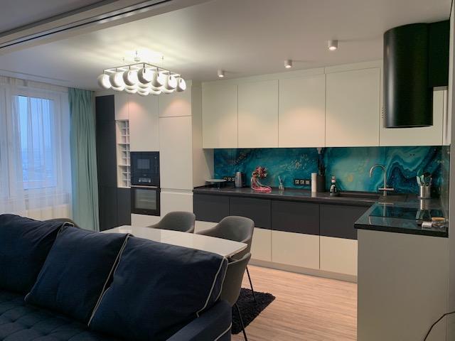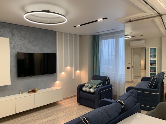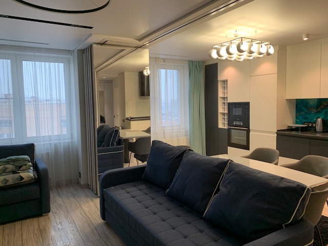 Планировка квартиры: общий метраж с учетом объединенной лоджией 80 кв.м., жилая площадь 43.9 кв.м.(комнаты изолированы 17-15.9-11 кв.м.), кухня 15,4кв.м., 2 совмещенных санузела(гостевая туалетная комната и совмещенный с/у с душевой кабиной), высота потолков 2,9м. В квартире выполнена качественный ремонт из дорогостоящих материалов, система умный дом, теплые полы(с датчиком на поддержание комфортной температуры), вместительные шкафы, надежная металлическая дверь, паркетная доска, тройные стеклопакеты, шумоизоляция, система отопления регулируется с телефона, встроенная кухня оборудована техникой KORTING(двухкамерный холодильник, электропанель, духовой шкаф, стиральная машина, посудомоечная машина, вытяжка). Полностью меблирована, есть темная комната, необходимая техника. Спальня и кухня легко преобразовывается в кухню-гостиную благодаря надежной капитальной раздвижной перегородке. Система кондиционирования во всей квартире. Ремонт делали для себя. В квартире никто не проживал. Есть все необходимое для проживания. Фото соответствует действительности.